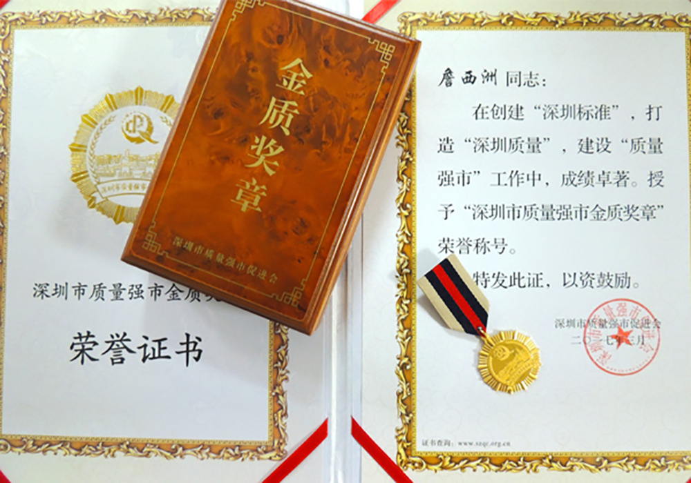 “深圳市質量強市金質獎章”于2013年設立,是深圳市最高個人質量榮譽。