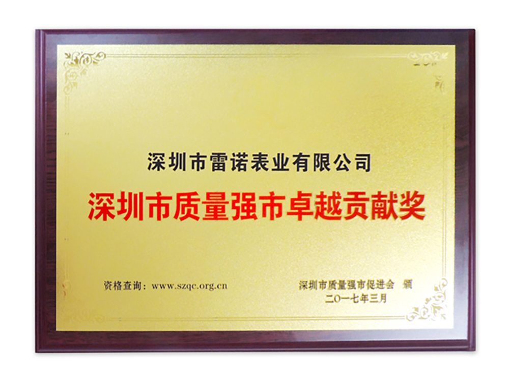 在本次2017年深圳市質量強市促進大會暨深圳質量建設年度盛典上,雷諾表業也榮獲深圳市質量強市骨干企業、深圳市質量強市卓越貢獻獎兩項殊榮,這是對雷諾表業以往的企業成績作出的肯定和嘉獎,更是激勵雷諾表再接再厲的強大動力,雷諾表業將繼續為鐘表質量及深圳質量把好質量關,以強質量鑄強企業!