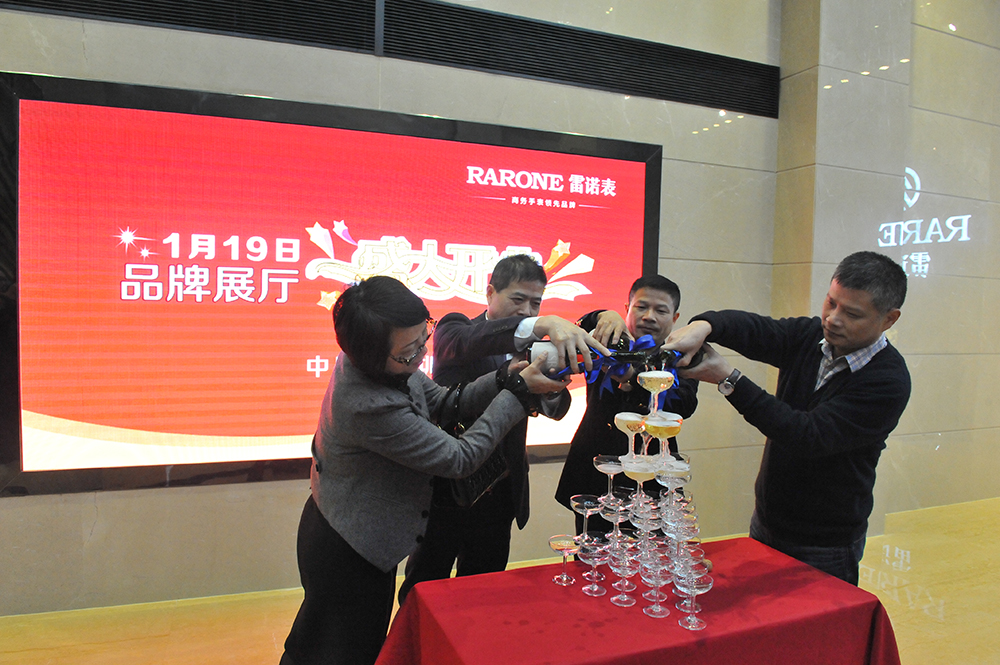 2015年1月19日,隨著喜慶的炮竹聲響,雷諾表總部展廳盛大開業(yè)!董事長詹西洲先生,總經(jīng)理詹江洲先生,及詹省洲先生出席開業(yè)慶典,并親自推開展廳大門,宣布展廳正式開業(yè)迎賓!雷諾表全體員工以及來自全國各個省市的區(qū)域經(jīng)理,共同見證了2015年開年盛事。
